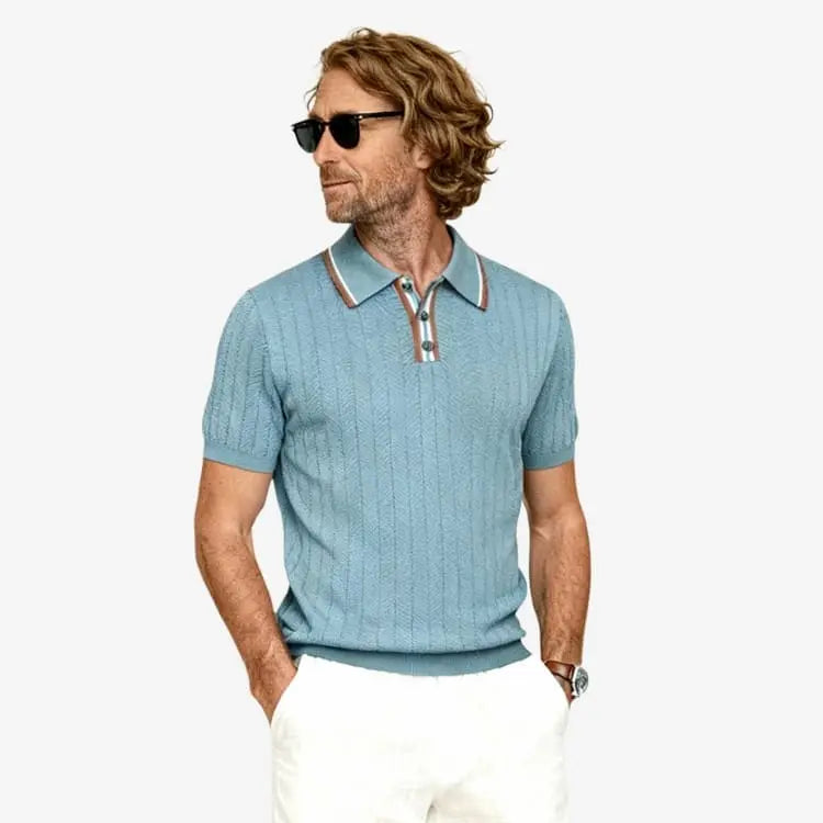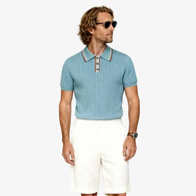 Por que escolher a Camiseta Polo Masculina Azul Claro de Malha Soffisticata?
