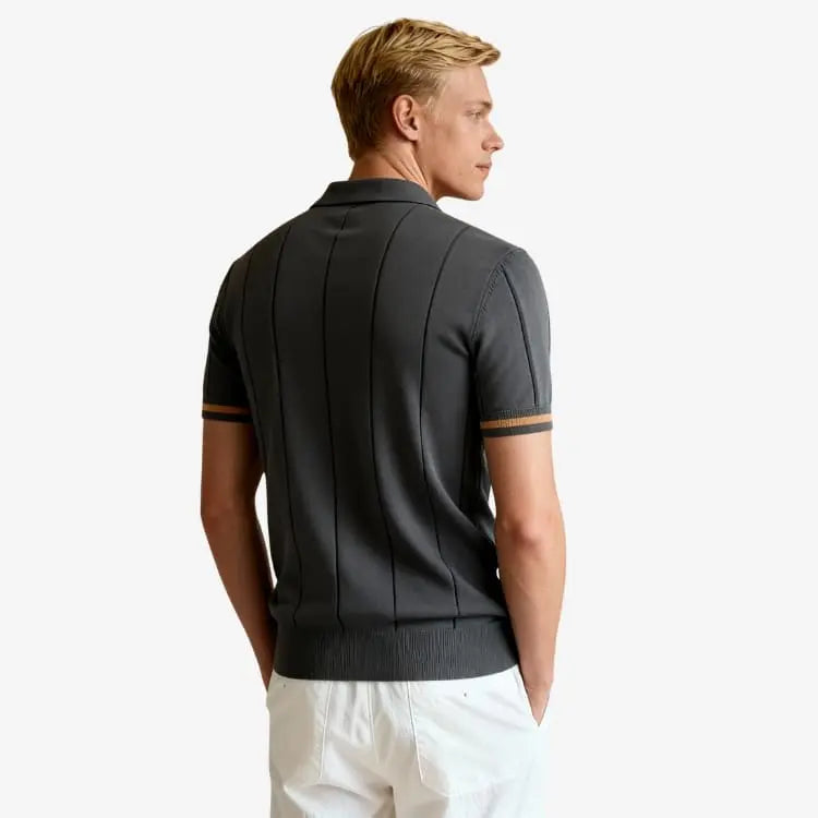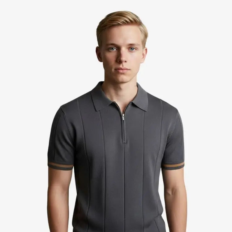 A Camiseta Polo Masculina de Malha Cinza Escuro Soffisticata é mais que uma peça básica – é um clássico reinventado para o homem moderno que valoriza conforto e bom gosto.