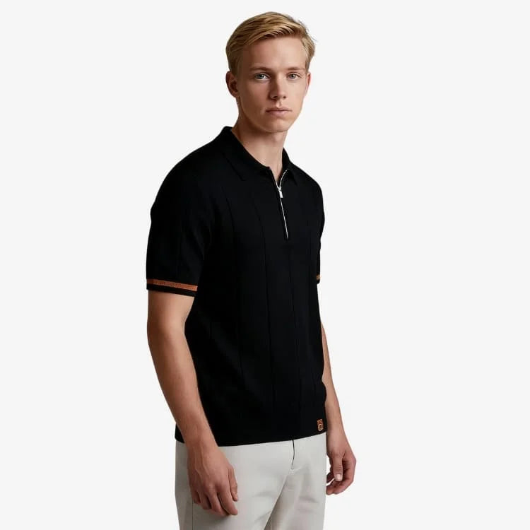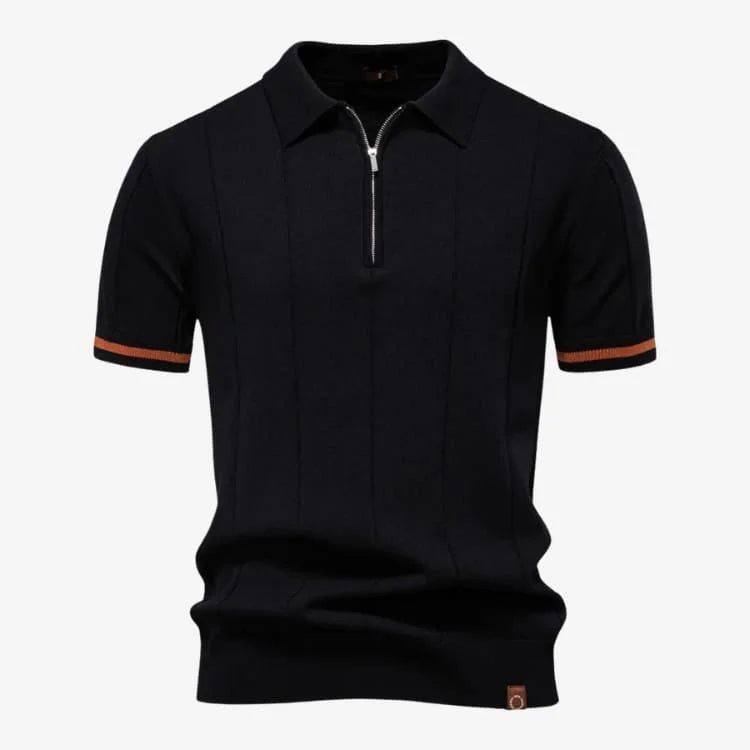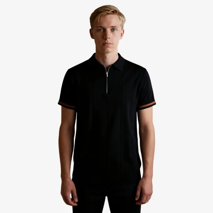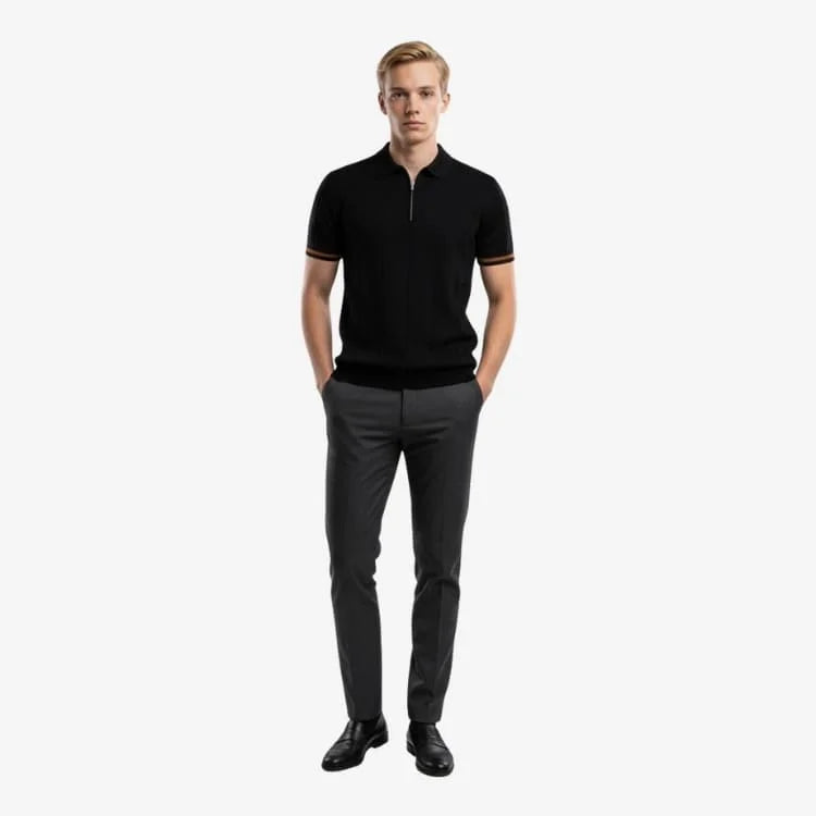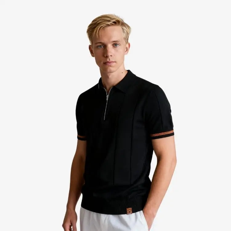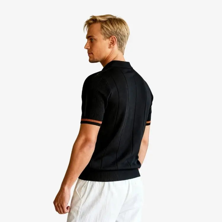 Invista na Camiseta Polo Masculina de Malha Preta e descubra o equilíbrio ideal entre estilo e conforto em uma única peça.