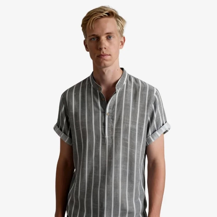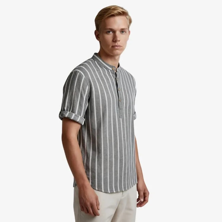 Seja combinado com calças de linho, alfaiataria ou jeans de corte reto, esta peça versátil valoriza a presença masculina, garantindo estilo marcante e conforto em todos os momentos.