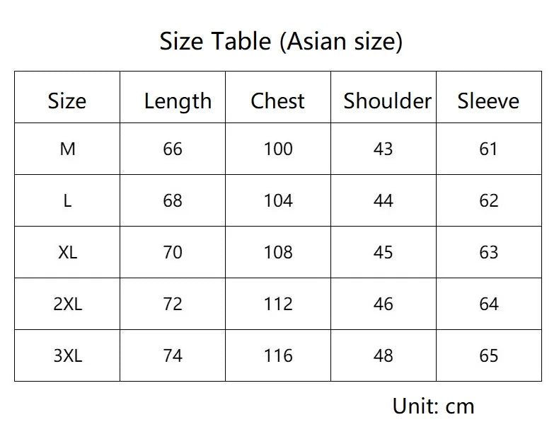 | Tamanho | Peito (cm) | Comprimento (cm) | Ombro (cm) | Manga (cm) |